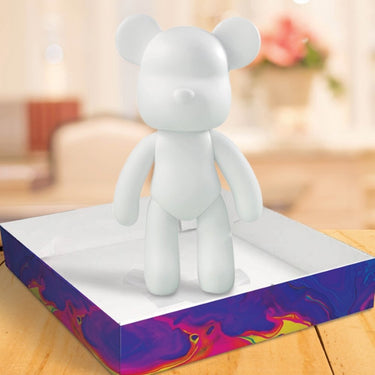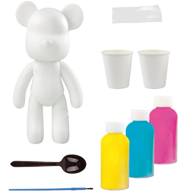 Kiekviename rinkinyje yra viskas, ko reikia: 23 cm meškiuko modelis, ryškūs marmuriniai dažai ir paprastos instrukcijos žingsnis po žingsnio.