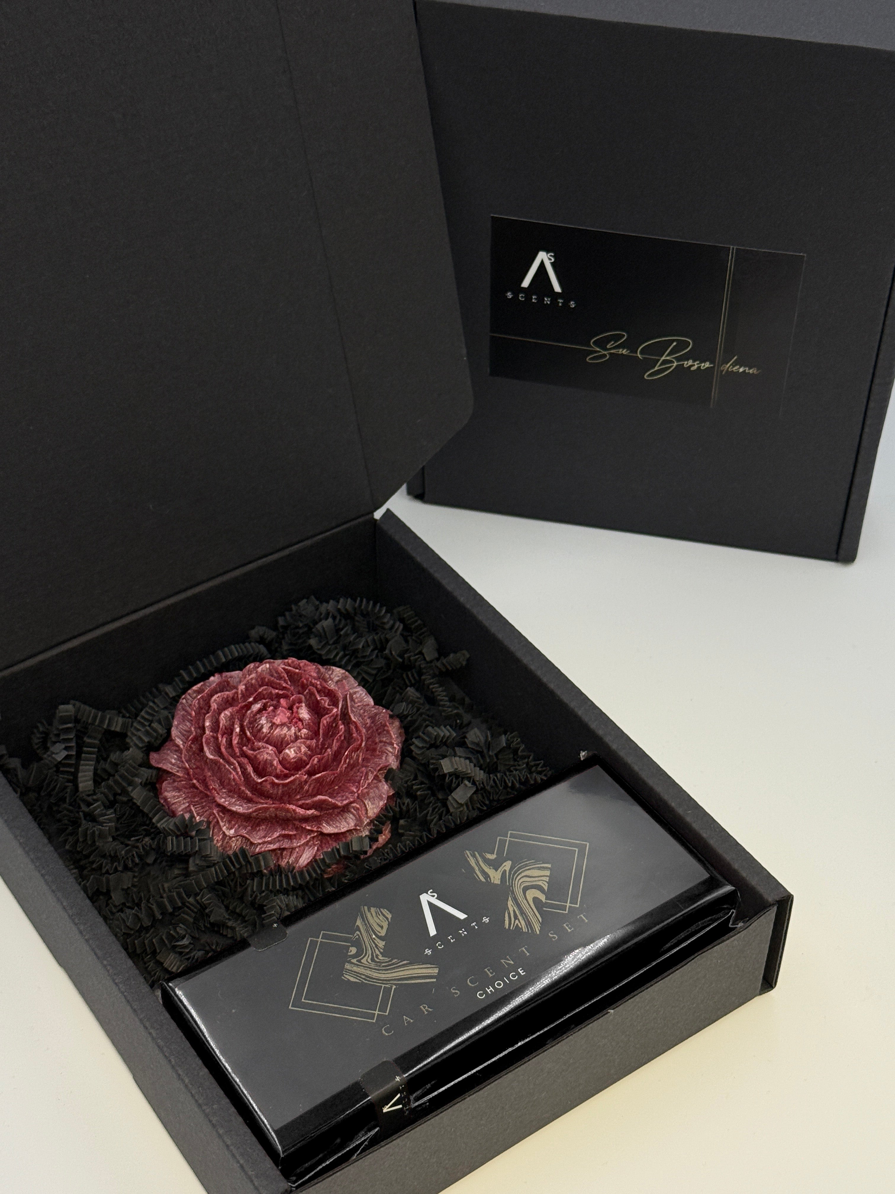 Aromatinė natūralios odos kortelė, 10 ml purškiklis, žvakė rožė