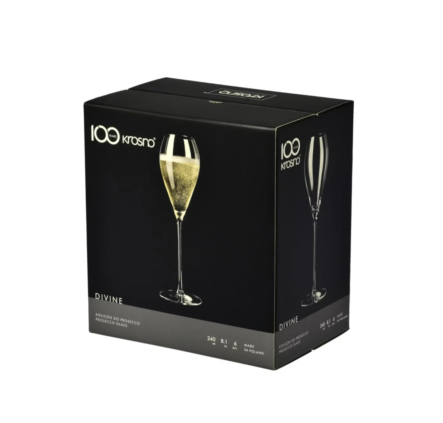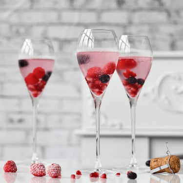 Elegantiškos, siaurėjančios formos taurės, sukurtos išlaikyti burbuliukus ir išryškinti Prosecco ar kitų putojančių vynų šviežumą.