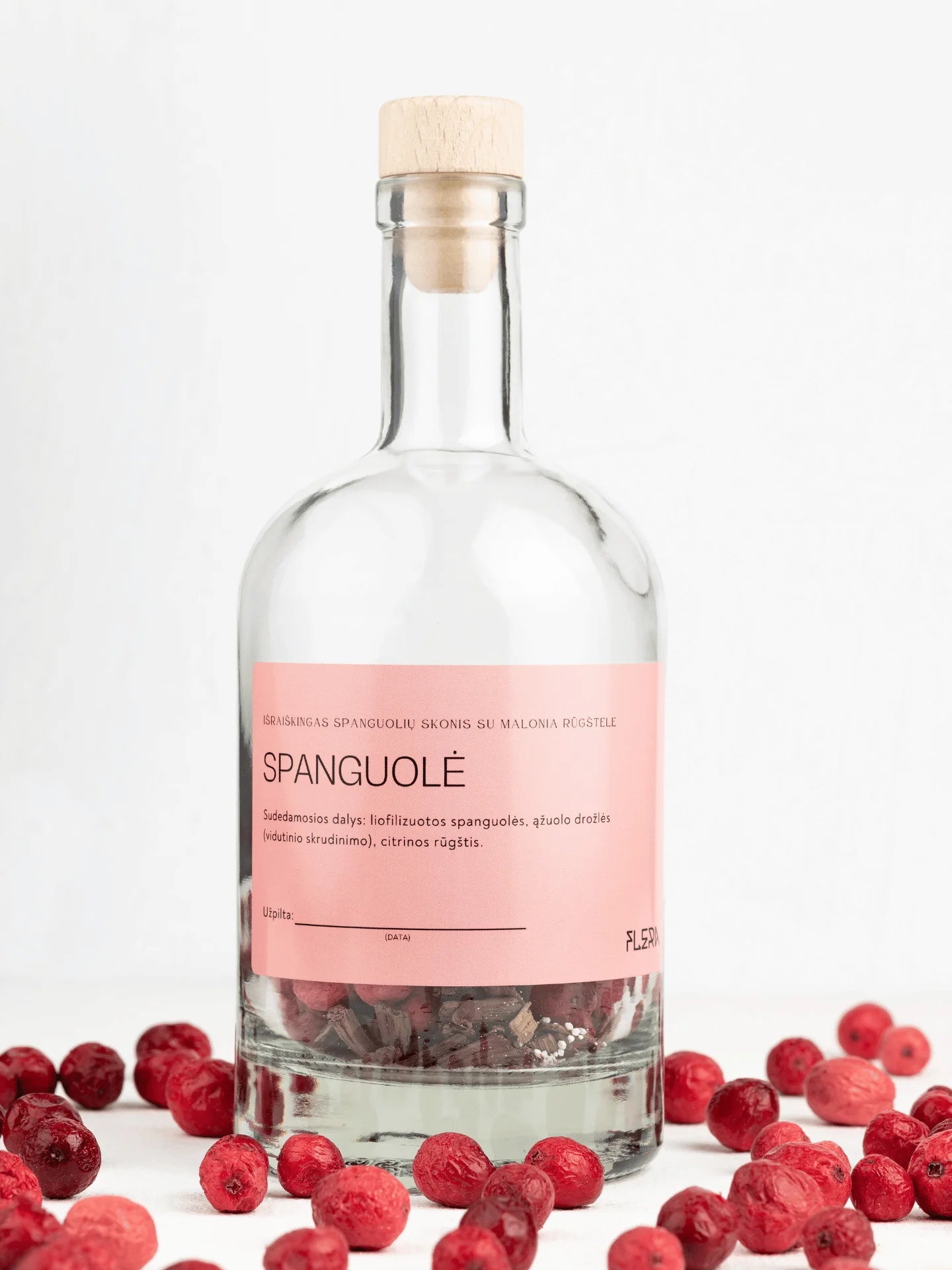 Sudedamosios dalys: liofilizuotos spanguolės, ąžuolo drožlės (vidutinio skrudinimo), citrinos rūgštis