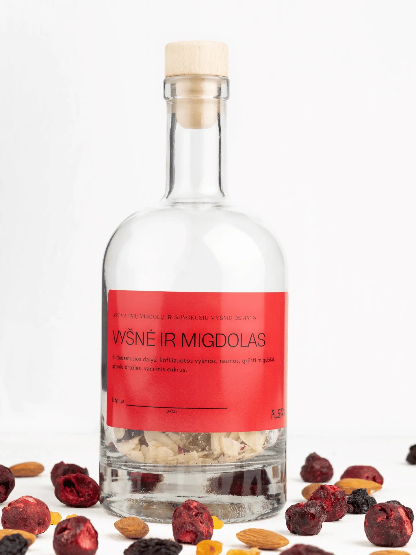 1. Užpildykite butelio turinį alkoholiu (40-45%).