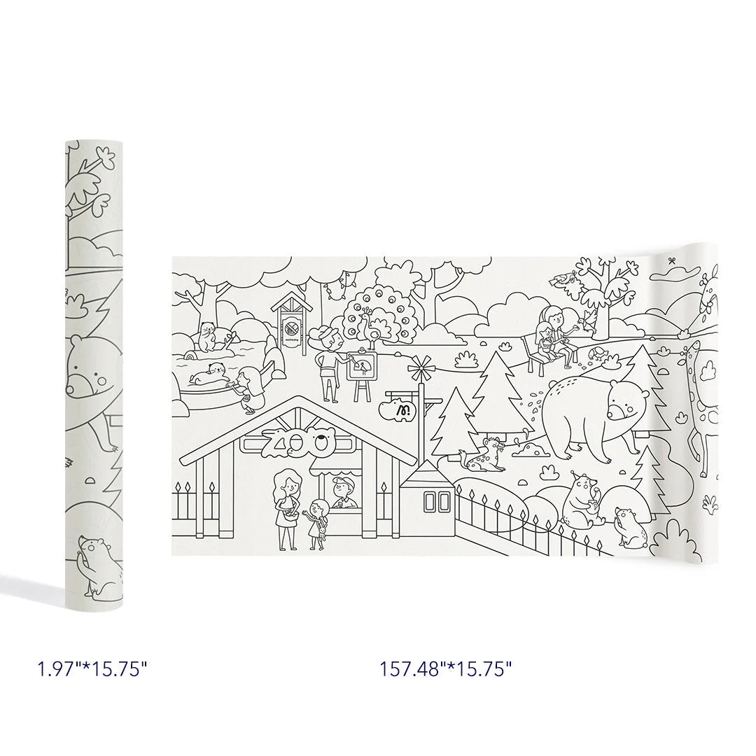 4 metrai spalvinimo paveikslėlių! Spalvink, klijuok ir nulupk be pėdsakų - piešti dabar galima visur! Ant sienos, ant grindų ar net ant stalo, nes spalvinimo lapas karpomas ir lengvai klijuojamas ant įvairiausių paviršių  - pasirink patogią vietą ir kibk į kūrybą. Daug skirtingų piešinių iliustracijų ir edukacinių užduočių vaikams. Storas popierius, pro kurį neprasigeria dažymo priemonės. Dažai iš sojų pupelių, bekvapiai ir saugūs naudojimui.