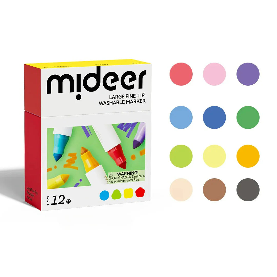 Mideer vienpusiai nuplaunami flomasteriai – tai puiki priemonė mažiesiems menininkams, kurie nori lengvai ir kūrybiškai reikštis piešiniuose. Jie puikiai tinka įvairioms technikoms, nuo subtilių detalių iki ryškių potėpių.