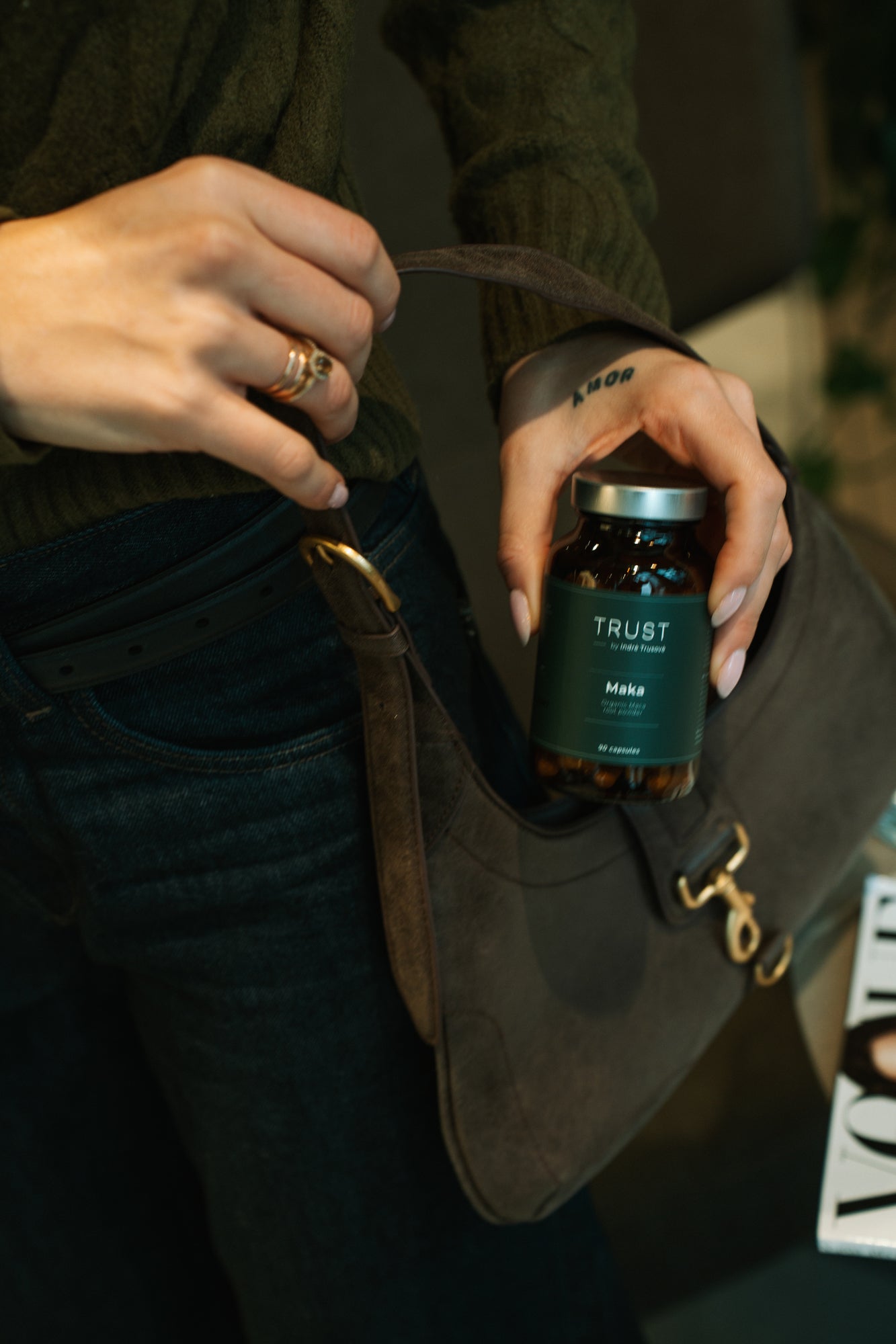 Peruvinių pipirnių (maka) šaknų milteliai (geltoni, raudoni, juodi), tūrio suteikianti medžiaga: mikrokristalinė celiuliozė, lipnumą reguliuojanti medžiaga: magnio stearatas, NU-MAG (ryžių ekstraktas), vegetariškos kapsulės apvalkalas (hipromeliozė).