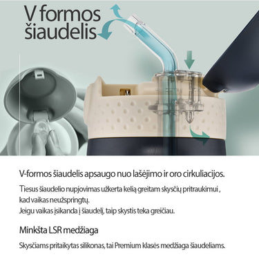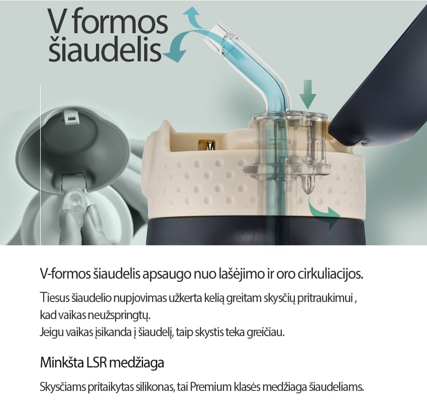 • V-formos šiaudelis apsaugo nuo lašėjimo ir oro cirkuliacijos.