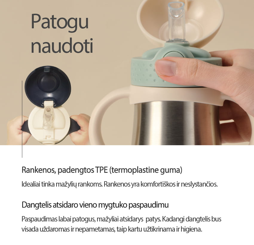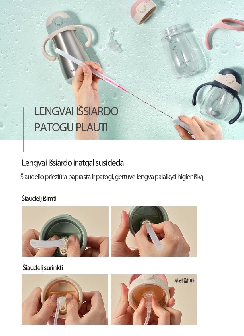 • 360 laipsnių gertuve patogu naudotis ir gerti gulint ar sėdint, kadangi šiaudelis su svareliu juda visomis kryptimis.
