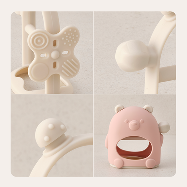 Šis kramtukas sukurtas taip, kad mažyliui būtų patogu jį paimti ir laikyti rankytėje. Minkštas silikonas švelniai apgaubia riešą, todėl kramtukas neiškrenta, net kai kūdikis aktyviau juda.