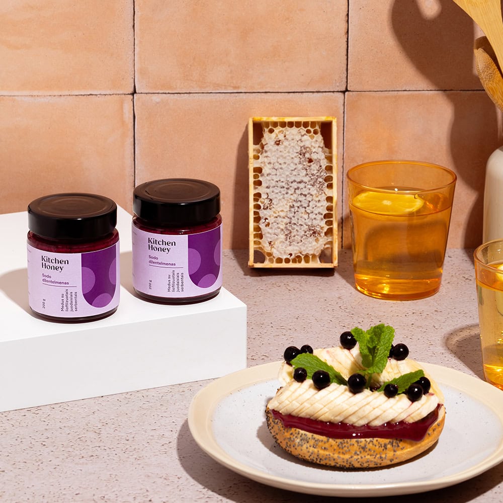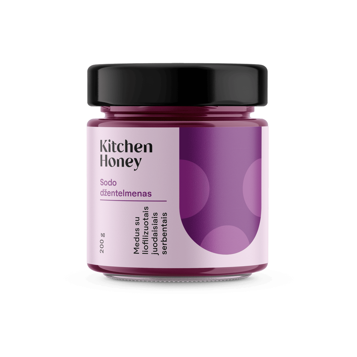 *Kreminis medus – kelis kartus iki kremo konsistencijos išsuktas skystas medus, kuris ilgam išlieka švelnios, kreminės konsistencijos. Medus papildytas liofilizuotomis uogomis, tampa dar vertingesnis.