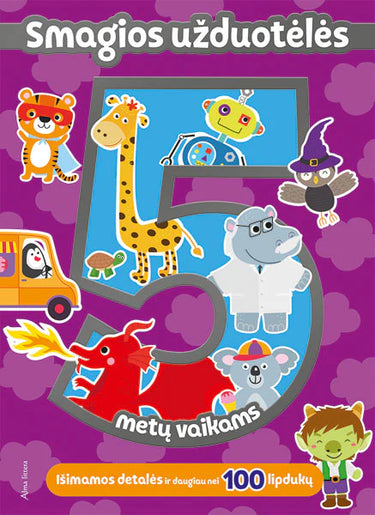 Daugiau nei 100 ateivių, vaiduoklių, mielų gyvūnėlių ir kitų lipdukų bei išimamų detalių mažuosius įtrauks į smagų žaidimą. Užduotėlės atitinka 5 metų vaikų galimybes ir poreikius. Smagūs žaidimai padės vaikams lavinti įvairius įgūdžius!