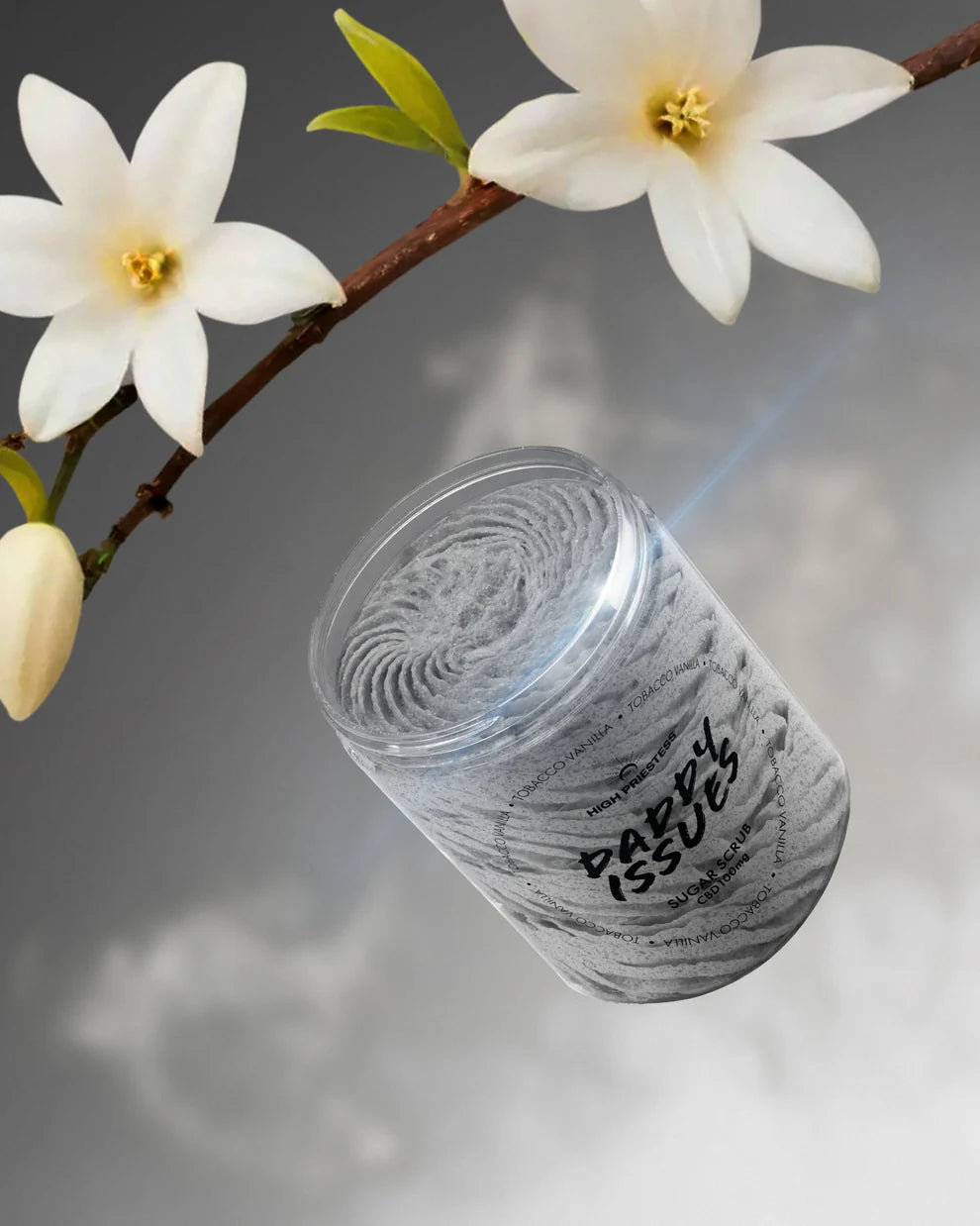 Saldžiosios vanilės ir dūminio tabako aromato cukraus šveitiklis, sukurtas prausimosi ritualui, primenančiam prabangią aromaterapiją.