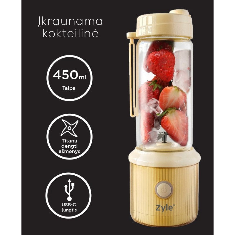 Kad būtų dar patogiau, ir savo mėgstamais gėrimais galėtumėte mėgautis kada tik panorėsite, ši kompaktiška ir lengva „Zyle“ kokteilinė yra įkraunama USB-C jungtimi. Tai itin patogu jeigu norite šį prietaisą naudoti lauke, mašinoje ar ilgų kelionių metu. Ją įkrausite vos per 3-4 valandas ir galėsite naudoti bet kokioje, Jums patogioje vietoje.