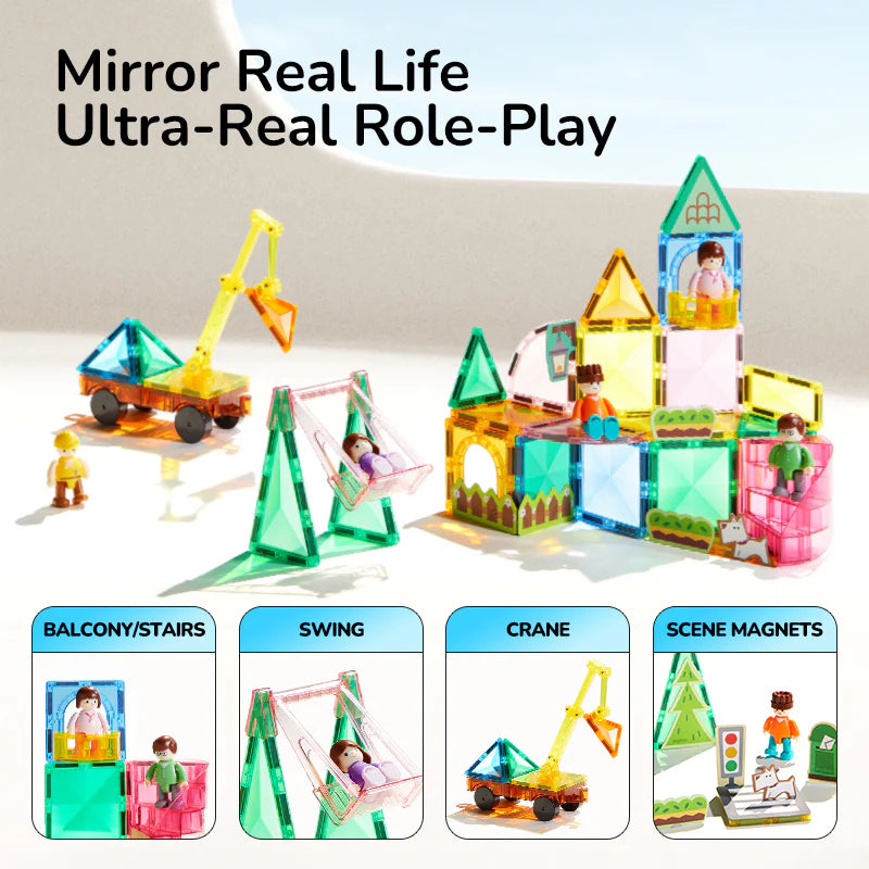 Teminiai magnetiniai konstruktoriai: Sukurti vaikų mylimiems vaidmenų žaidimams, jungia klasikinį spalvotą magnetinį konstruktorių su realaus gyvenimo elementais.
