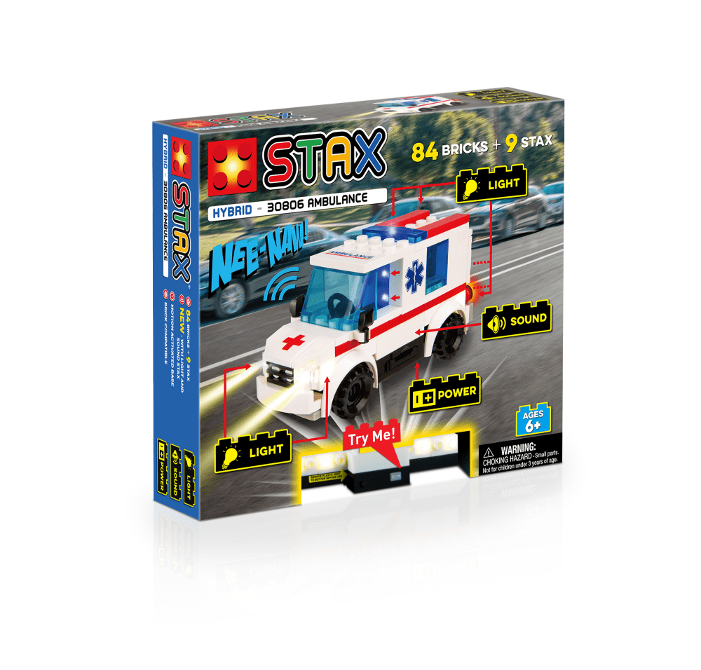 STAX Hybrid turi garso ir šviesos efektą. Aktyvuojamas 5 sekundėms, kiekvieną kartą, kai konstruotojas jas pajudina.