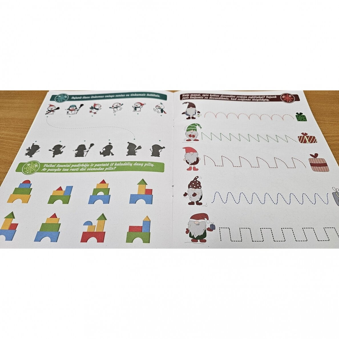Šis knygelių rinkinys padės smagiai ir turiningai leisti kalėdinį laikotarpį. Rinkinį sudaro dvi užduotėlių knygelės, viena spalvinimo knygelė, 140 lipdukų rinkinys, 30 iškilių lipdukų ir 4 spalvoti pieštukai. Atlikdami užduotėles, spalvindami ir klijuodami lipdukus vaikai ne tik patirs daug džiaugsmo, bet ir lavins atidumą, kruopštumą, loginį mąstymą, rankų miklumą.