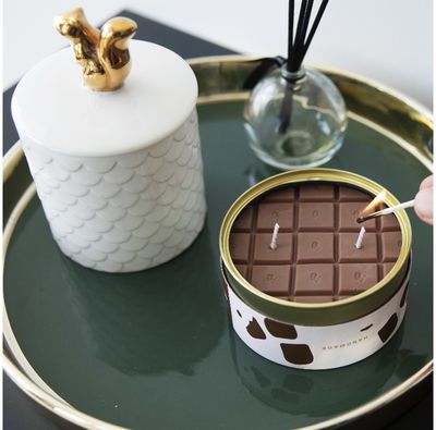 Kvapioji rankų darbo žvakė skardinėje, ne tik atrodanti tarsi tikras šokoladas, bet taip ir kvepianti šokoladu. Žvakė ne tik nustebins bet kurį jūsų draugą gurmaną, bet ir sužadins jų apetitą.